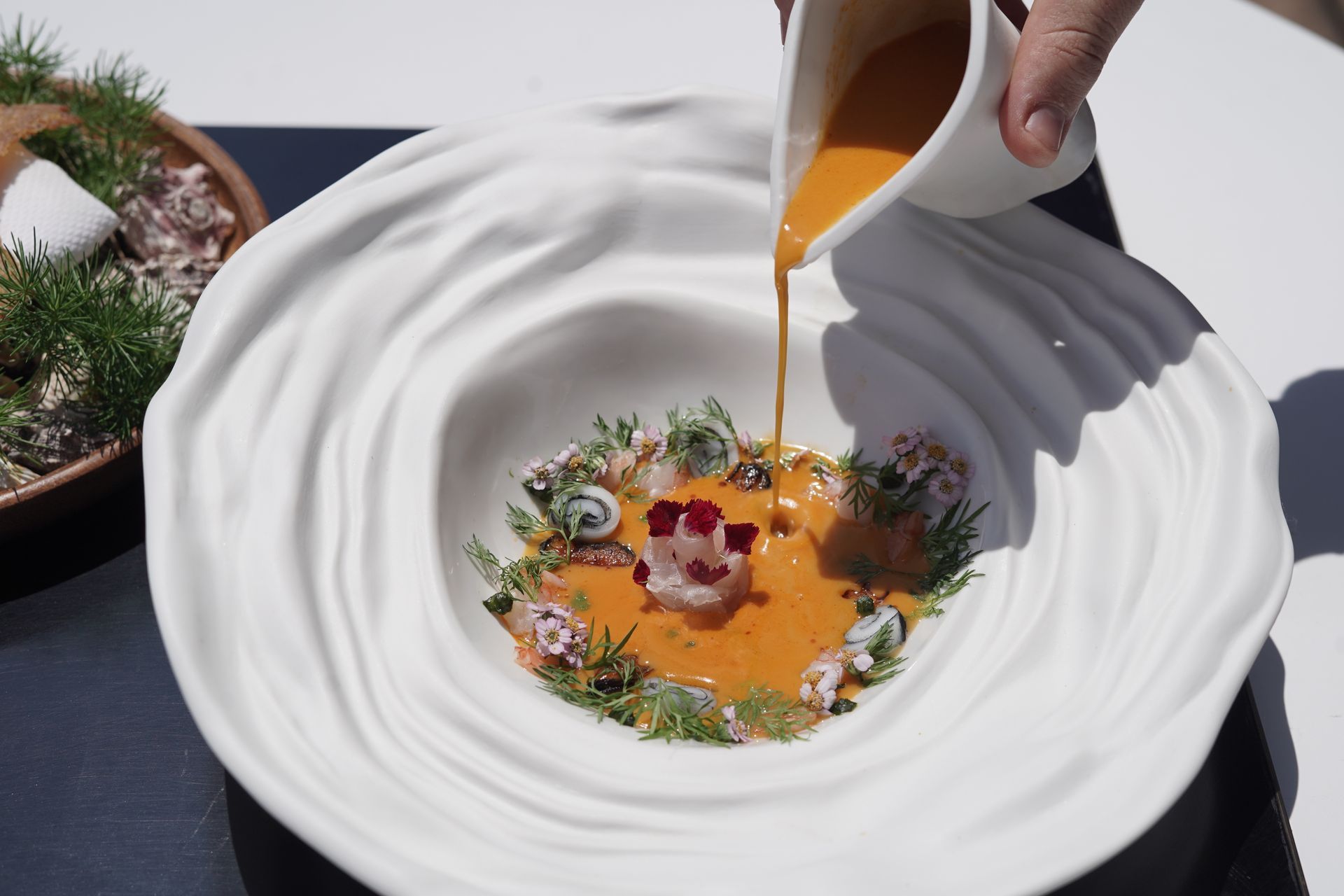 “Mi inspiración nace de técnicas internacionales aplicadas a ingredientes locales: una cocina que une técnicas del mundo con producto de temporada, respeta su historia y lo eleva con precisión, creatividad y hospitalidad, siempre pensando en lo mejor para nuestros comensales.” - Federico Aristizabal